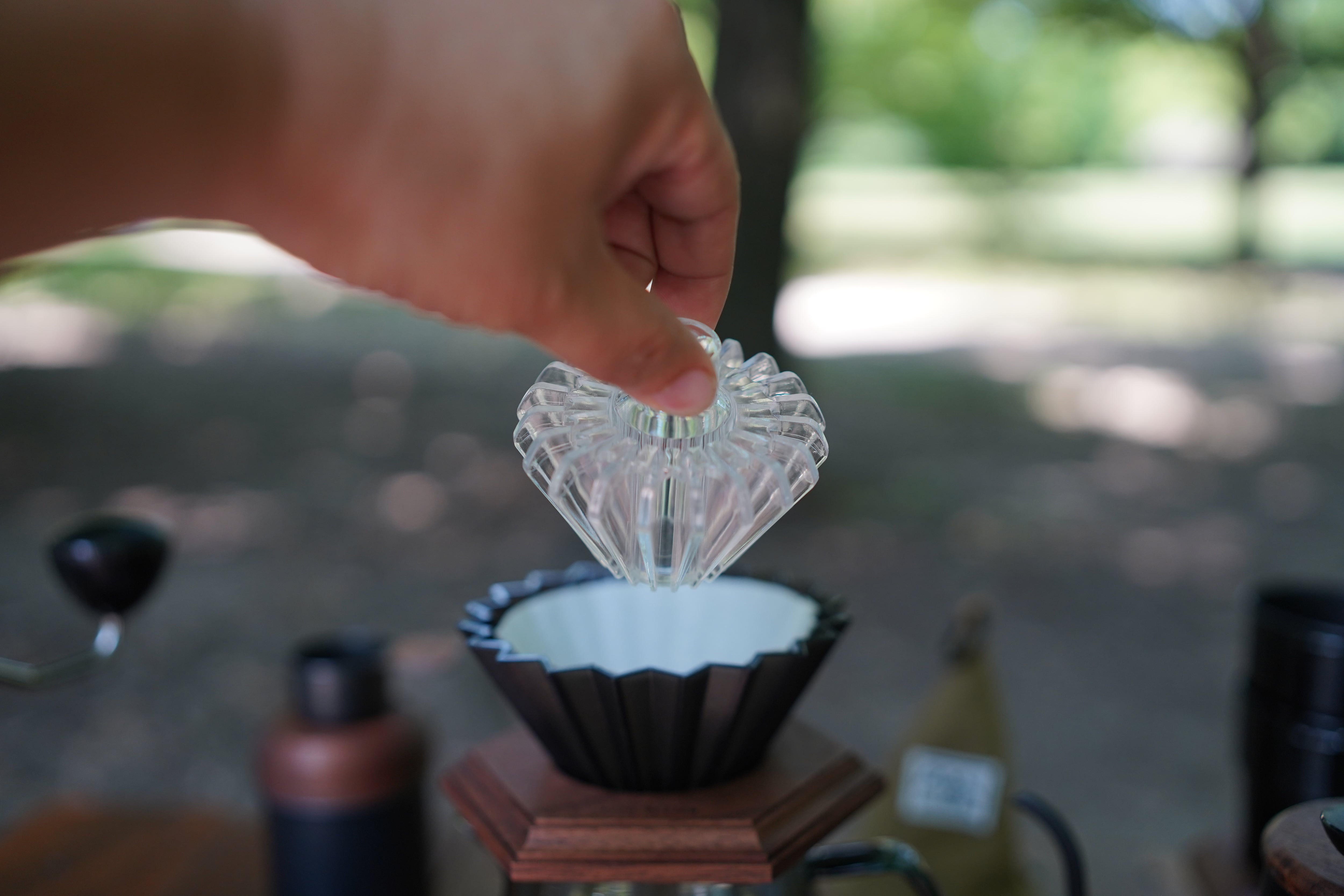 ドリップペーパーの重し。風がある時や折曲がりがあってちゃんと開かない時などとても便利です。