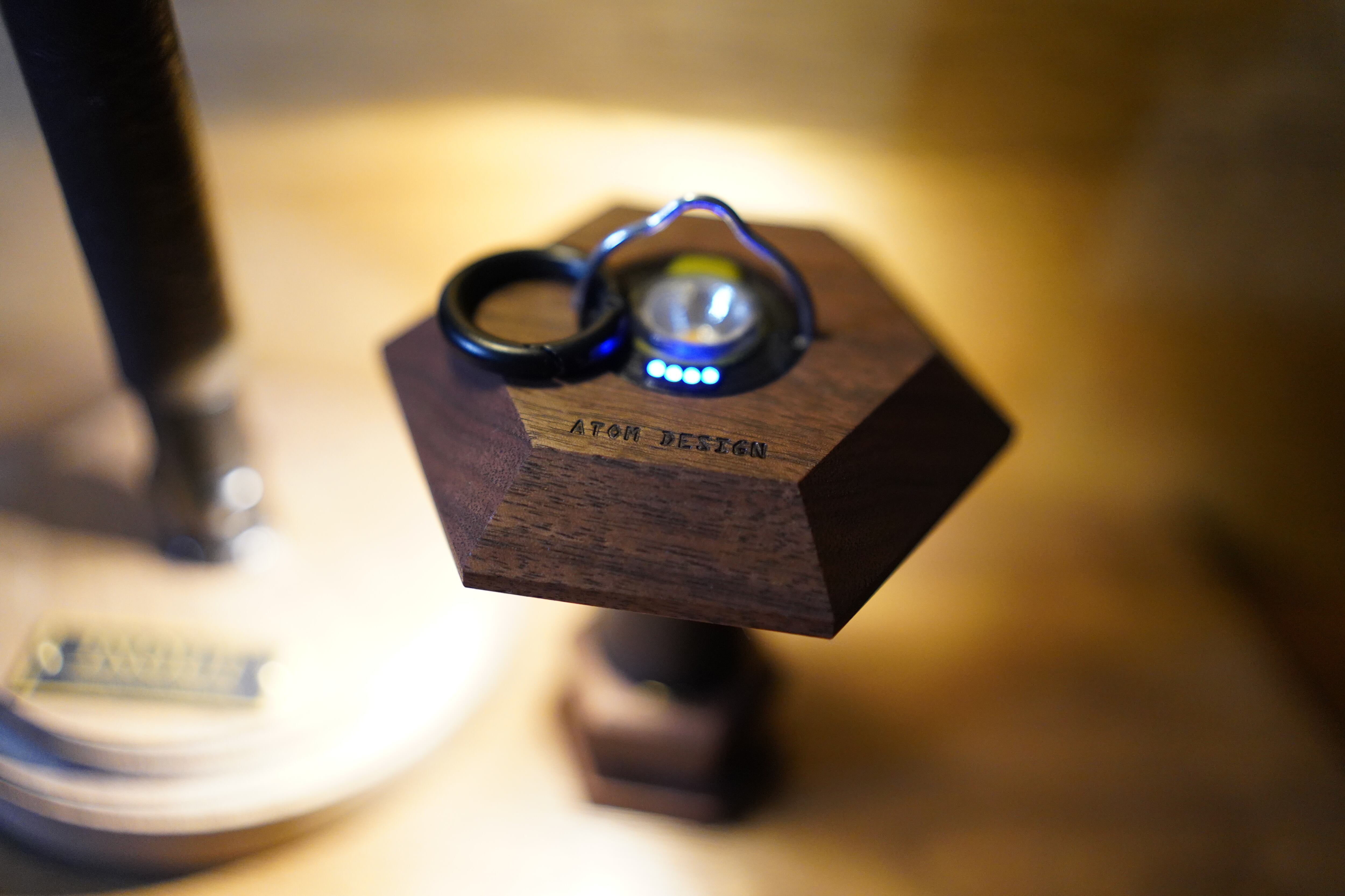 カラビナがセットでさまざまな場所に吊るすこともできます。底にネオジウム磁石が埋め込まれておりますのでスタンド部分はワンタッチで装着可能で充電の際はストレスなしです。